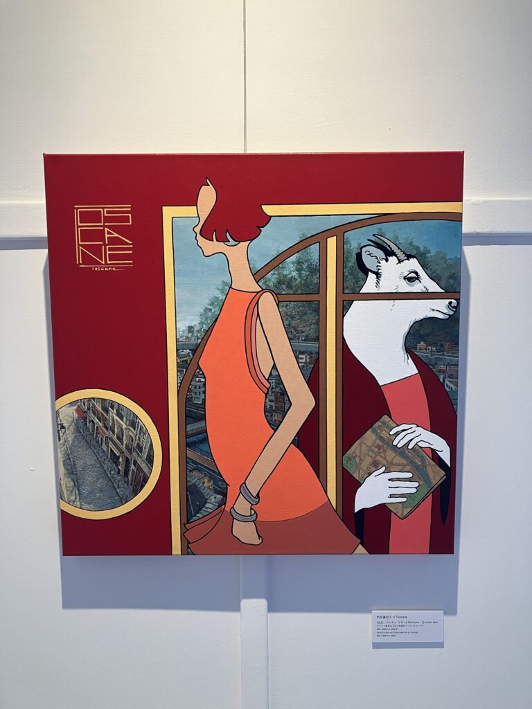 パリ生まれのアーティスト、Toscaneさんと塩竃出身・在住の画家、釣舟さんとのコラボ作品。アート展は4/12日曜日まで。