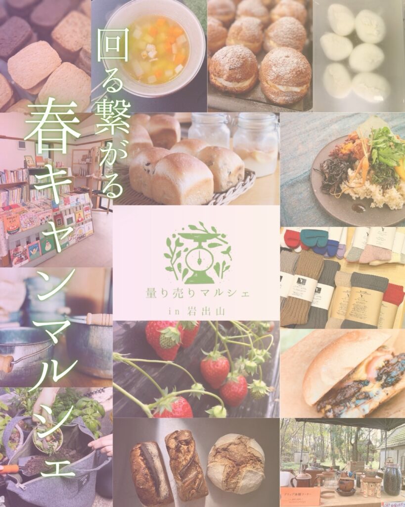 初めての場所です、無事着けるよね、私。ということで量り売りマルシェに出店いたします。今回も魅力的なお店が大集合ですよ。量り売りなので、タッパーウェア、カゴ、広口の瓶など容器を持ってぜひ遊びにお越しください。出店者等詳しくは、Instagram、hakariuri_marche_iwadeyamaをご覧ください。天気予報は今のところ晴れ。最高気温は20℃!春を通り越して初夏?皆さまのお越しをゆったりとお待ちしております。